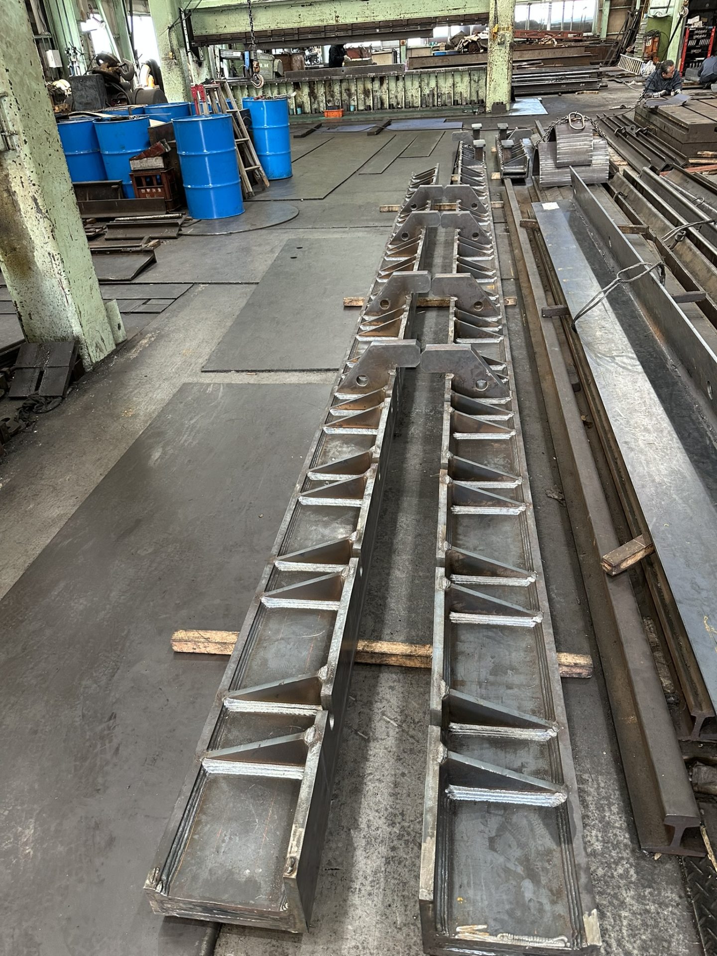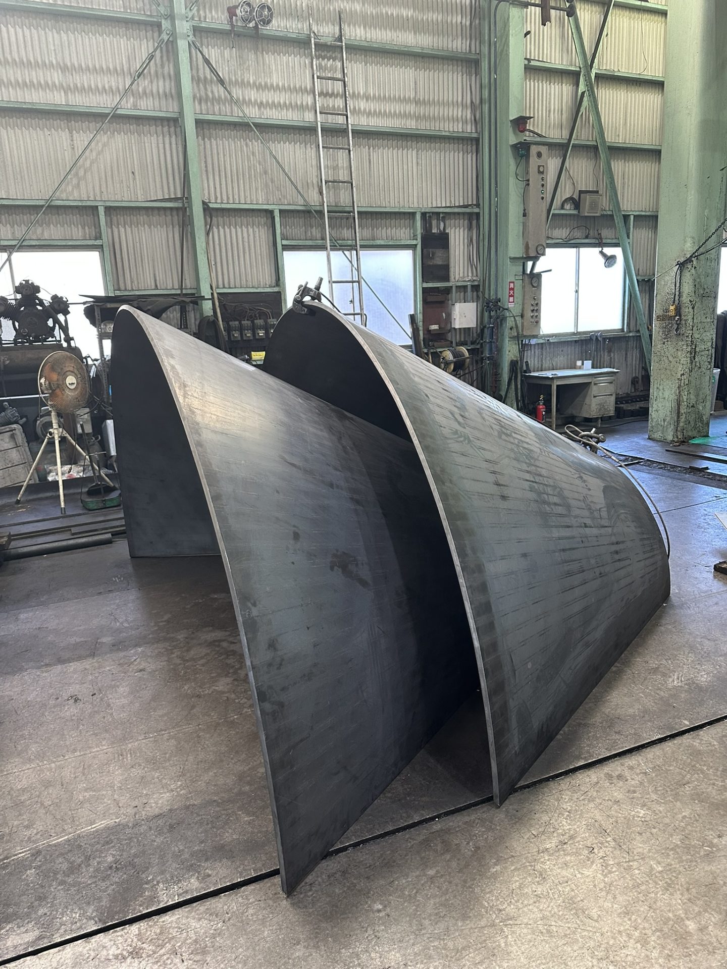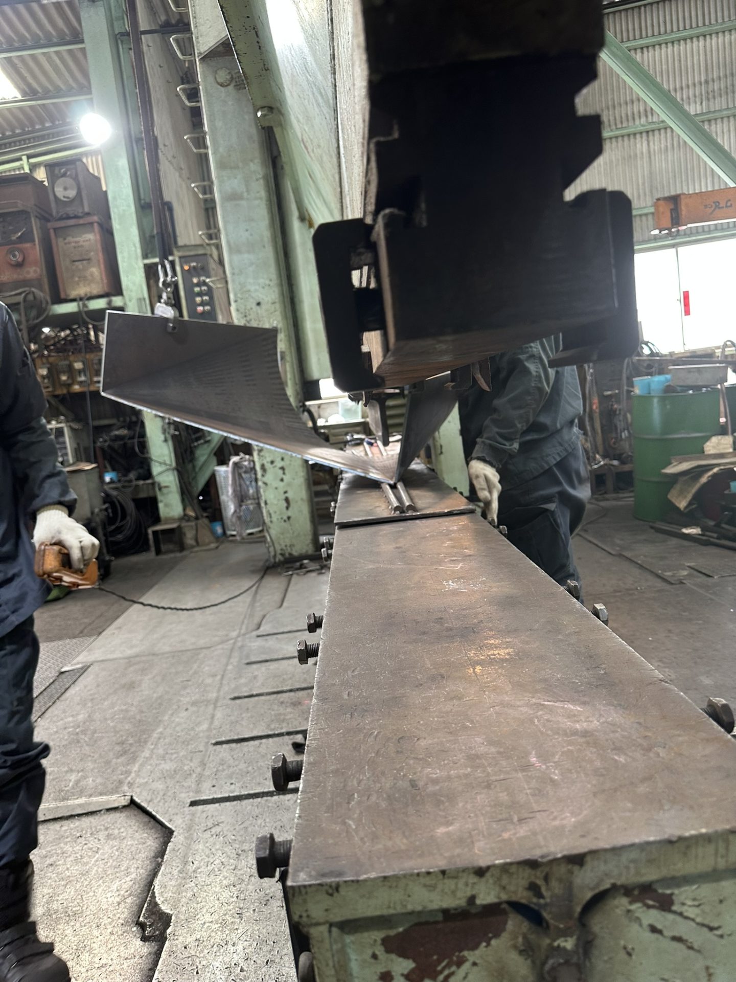 私たち森井鉄工所は、鉄板の折り曲げ加工を専門としています。 自社工場内には、大小様々なプレス機器を取り揃えており、長さ6500mmまでの加工や、条件が揃えば150mmの厚い鉄板を丸く曲げることもできます。 標準的なL字やコ字加工はもちろん、角丸管やテーパー管、異形管にも対応いたします。ロール業者や他ベンダー業者が不可能と判定した製品や加工も、ぜひ一度ご相談ください。