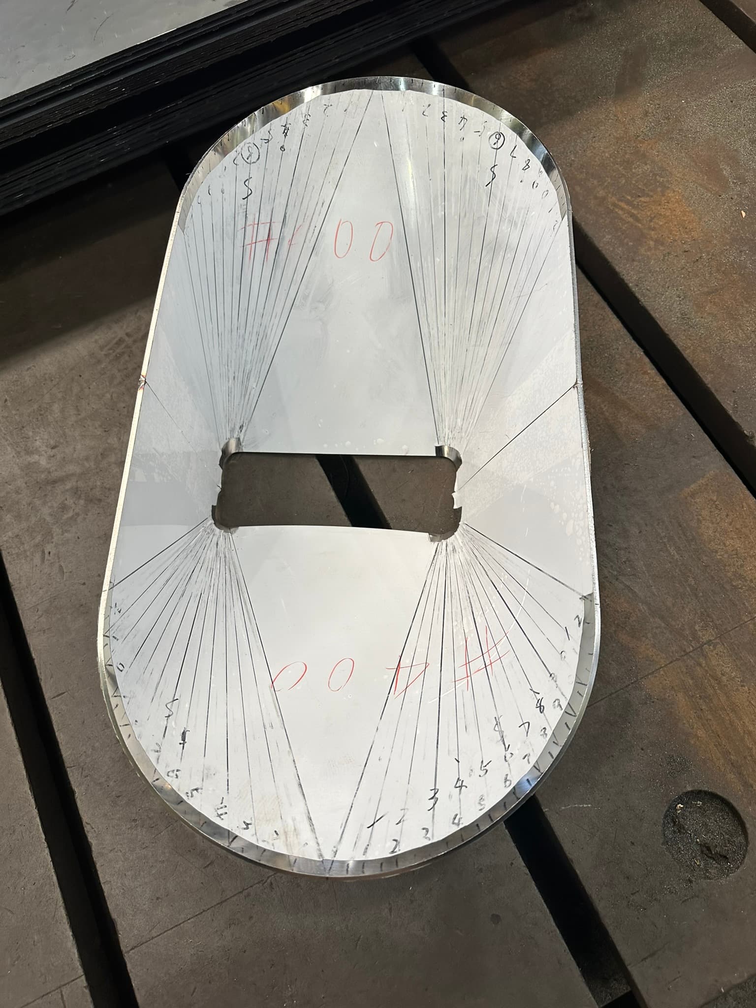材料メーカー様より支給いただいたステンレス材(SUS304)を使用し、特殊な異形管の鉄板曲げ加工を行いました。